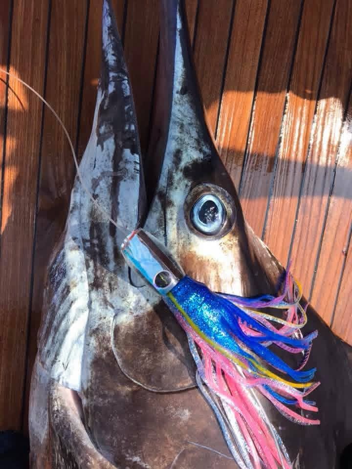 Another sized down Breakfast just waiting to be devoured by a Marlin or other predator. This Breakfast is sized for action, a swimmer, diver, big splash, quick darting action teasing predators into a frantic suicide bite. Breakfast, Lunch, or Dinner this hot lure is going to be some fishes Breakfast. Lure Weaponry strikes again! Best Rigged with 10/0 to 11/0 hook sets.